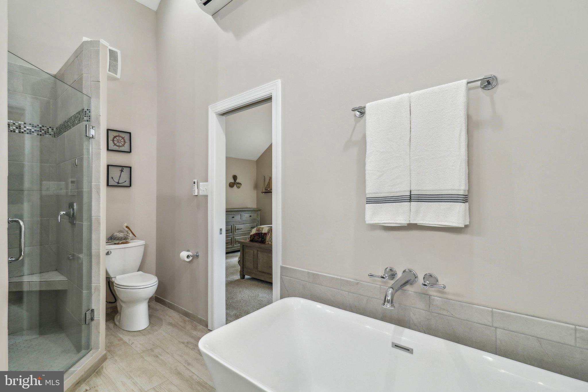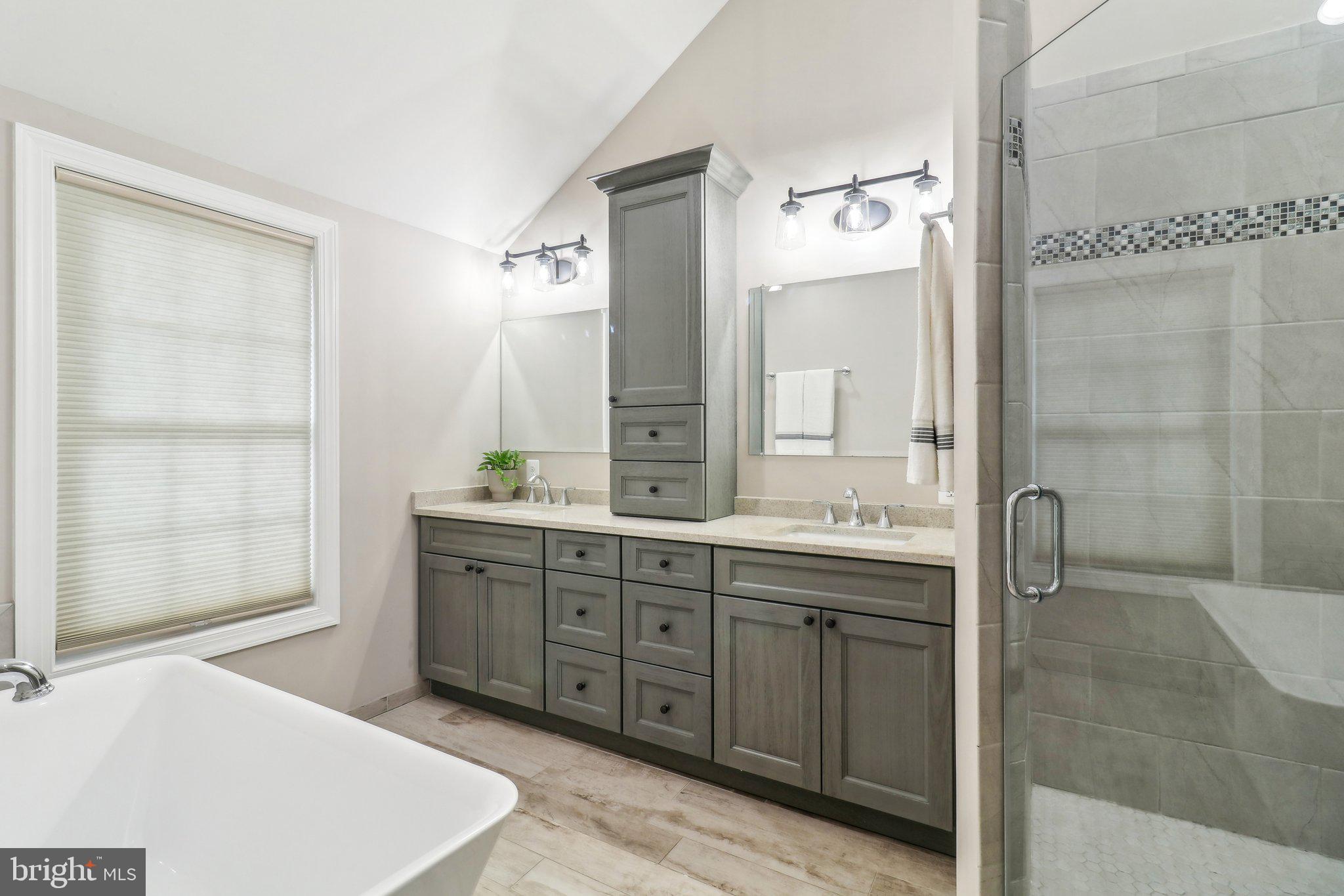 A 2021 addition created the kind of primary retreat buyers beg for in McLean. Vaulted ceilings, its own LG mini-split for whisper-quiet comfort, a walk-in closet behind a space-saving pocket door and another pocket door to the spa bath keep the suite flowing yet tucked away. That bath spoils with a soaking tub, oversized custom shower and double vanity, all under another vaulted ceiling that lets morning light pour in. Two more bedrooms share an updated hall bath finished in 2022, while the upstairs studio/bedroom enjoys its own mini-split and a refreshed bath the same year. Head downstairs and the 2023 remodel delivers a wide-open rec room on new laminate wood flooring--perfect for movie nights or a home gym--with a dry, comfortable feel thanks to a new sump pump (2019) and a whole-house sanitary line renovation completed last year.