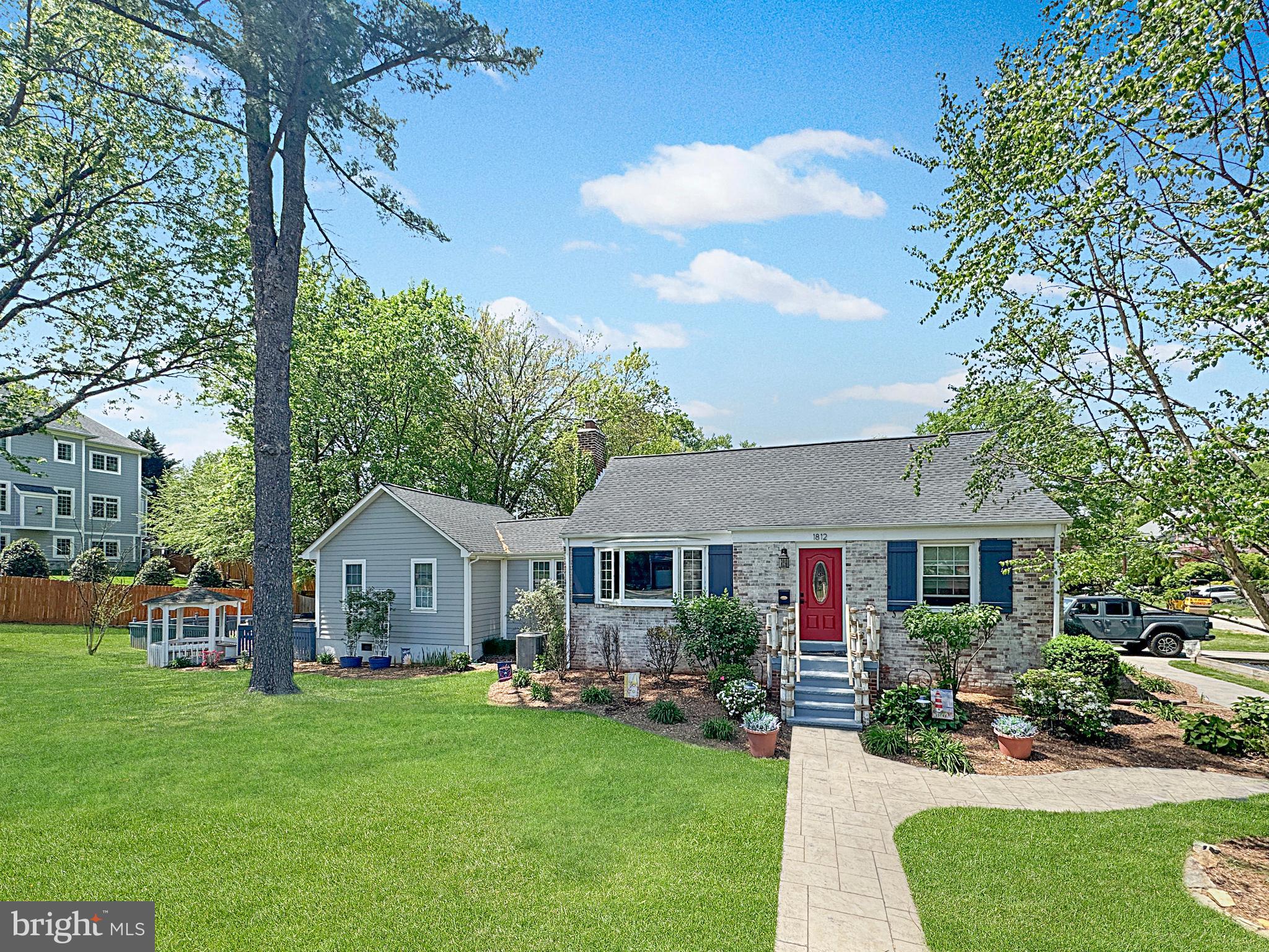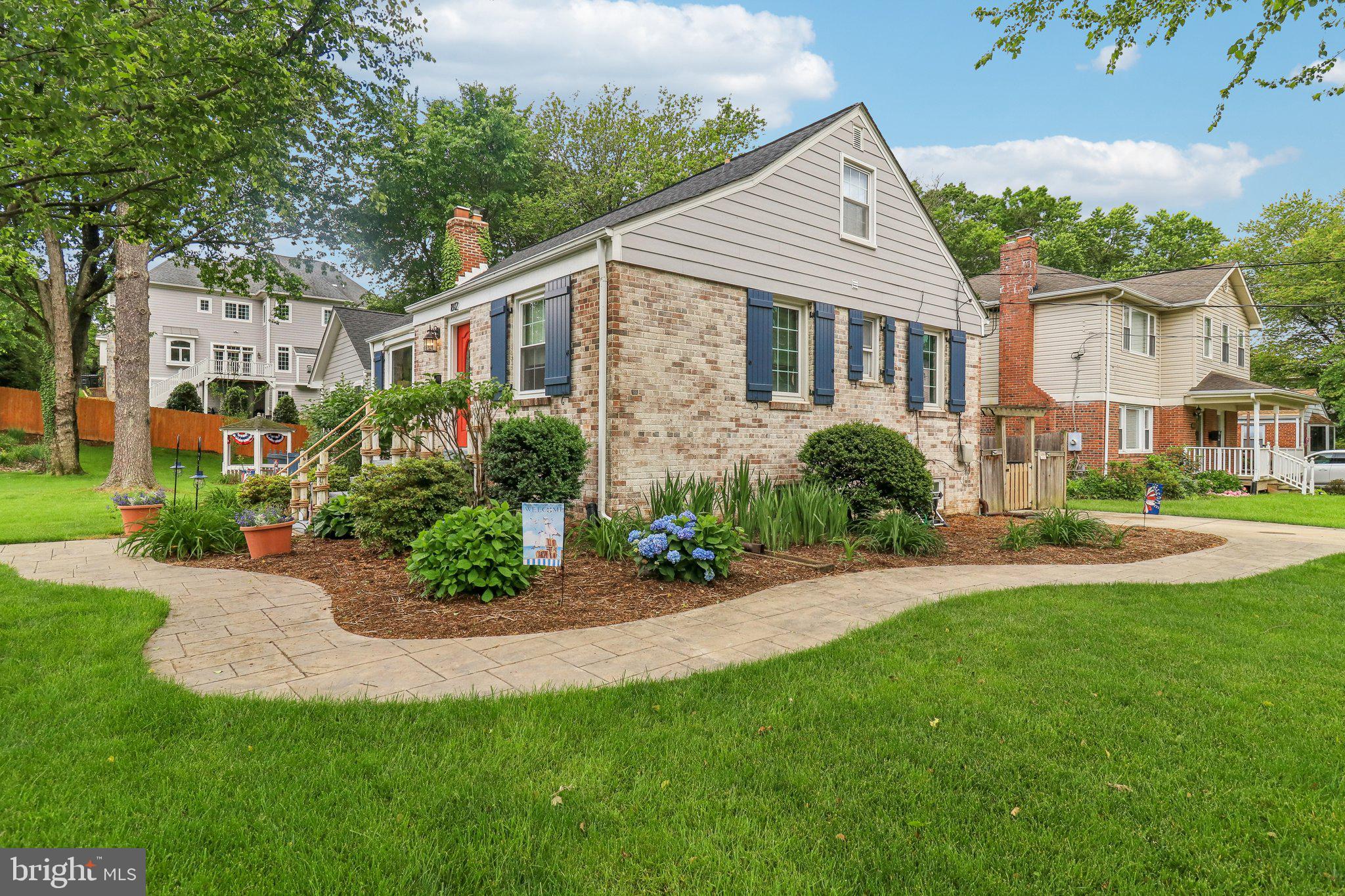 Pull onto this quiet tree-lined street and the house simply feels friendly. A curved stamped-concrete walk added in 2015 guides you past lime-washed brick, working cedar shutters and a bright red front door replaced in 2020. A brand-new porch handrail (2024) frames the entry, and the late-2020 roof lets you enjoy curb appeal instead of worrying about it.