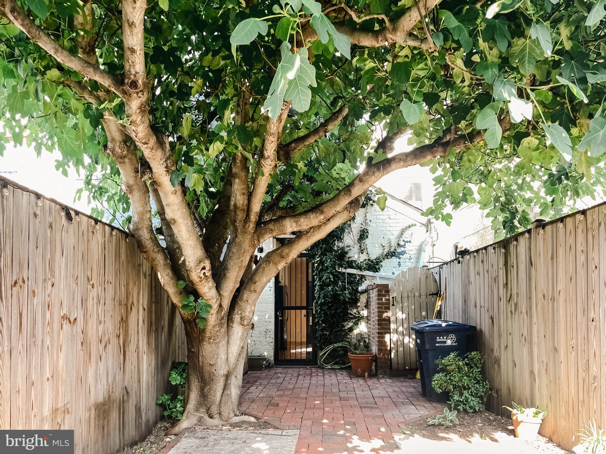 A private, fenced in, and gated patio awaits through the back door, shaded by a large, healthy tree. Ideal for quiet mornings, evening entertaining, or weekend grilling, this outdoor space is a true retreat. There's also space for off-street parking, a true luxury in the city!