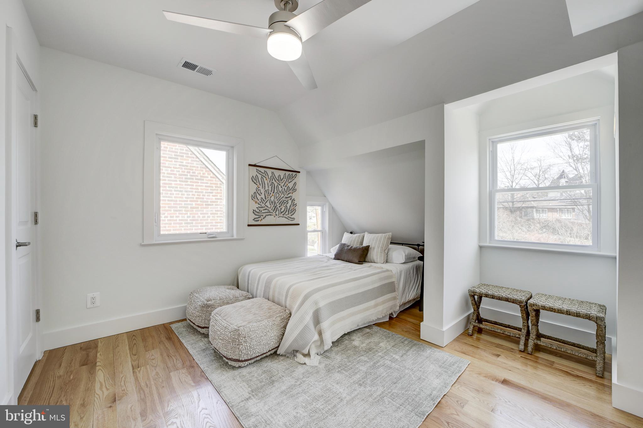 Situated on one of the most desirable streets, this stunning 1936s classic Colonial seamlessly blends the character of the neighborhood with the modern convenience sought after in today's market. A rare find in the area, this beautifully renovated 6-bedroom, 4.5-bath home spans just over 2,600 square feet, and over 4 levels, featuring gleaming natural wood floors throughout all main levels, a brand-new architectural shingle roof, and energy-efficient windows and brand new furnace, A/C, and water systems. Thoughtfully updated to meet contemporary needs, the home boasts a well-appointed primary suite complete with a double-sink vanity and dual rain head showers, offering a luxurious retreat. Highly desired bedroom-level laundry, located on the 3rd level of the home, ensures ultimate convenience for large and busy households. Additional bedrooms are situated on the upper levels, designed with a Jack-and-Jill concept for added functionality and comfort. Unlike many homes in the area, this home has a fully finished basement which features a legal full-size bedroom, a full bathroom, and a spacious recreational area, creating a traditional basement layout with ample living space. A walk-out basement provides seamless access to the backyard. Additional storage area is fully finished as well or convert to fitness/ home office/ crafts room. Suited on a large lot, the outdoor spaces offer a peaceful escape, including a private deck overlooking a spacious backyard--perfect for entertaining or quiet relaxation. Located in Takoma Park/Brightwood neighborhood, this home provides easy access to Takoma Metro Station, parks, and local amenities. Just minutes away from The Parks at Walter Reed, one of the most exciting new developments in the area, residents will enjoy access to a brand-new Whole Foods Market, a variety of retail shops, dining options, and entertainment venues. This vibrant community hub enhances the neighborhood's appeal, bringing modern conveniences and lifestyle amenities within easy reach