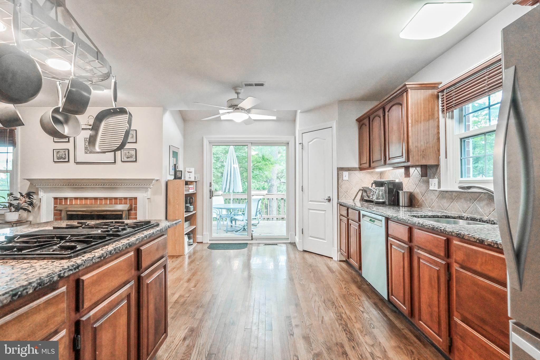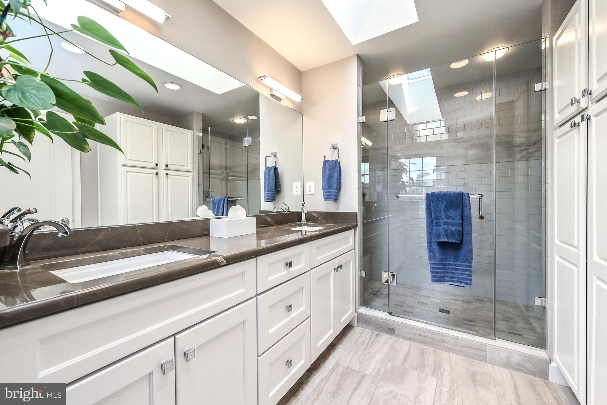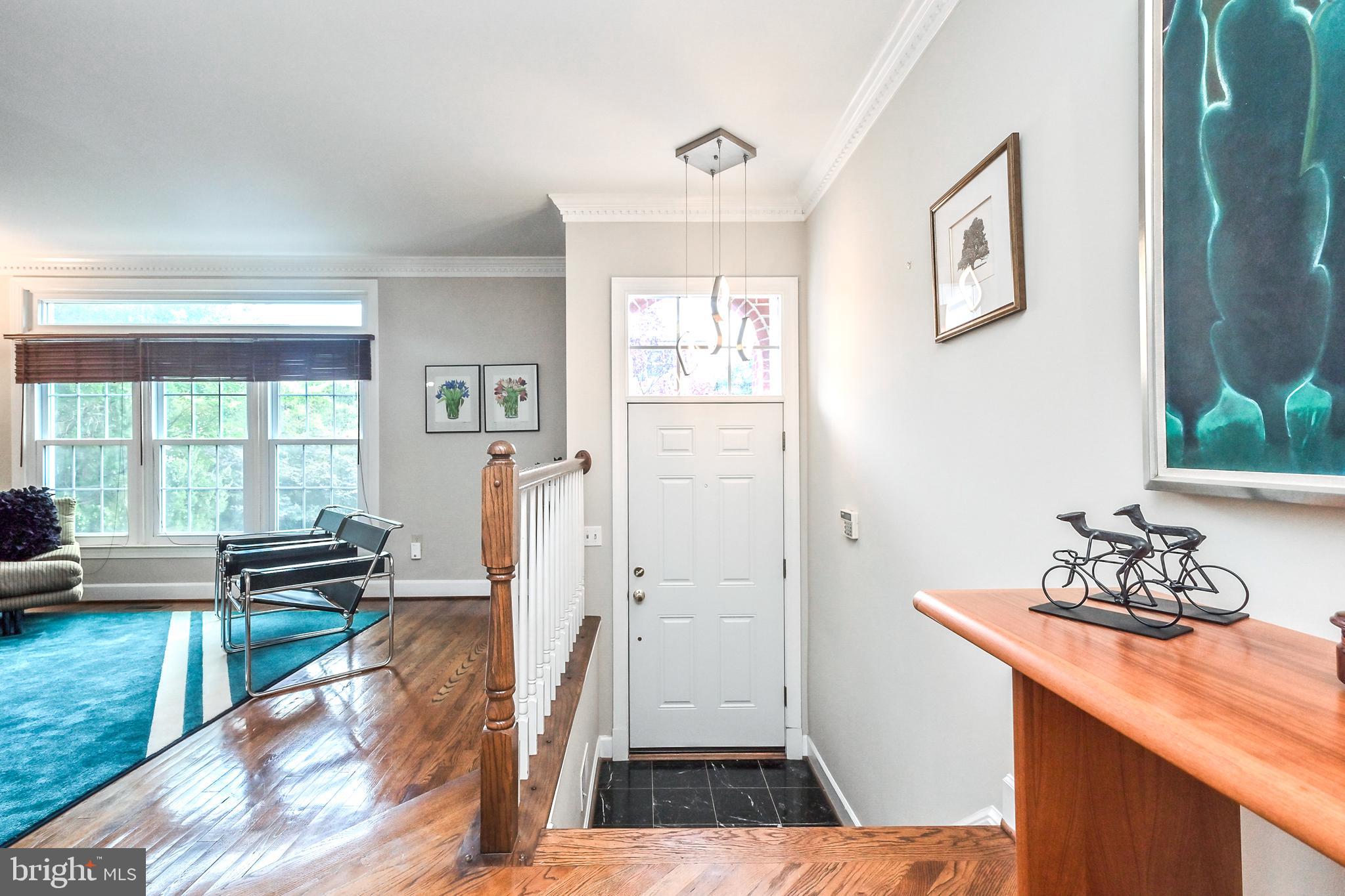 This exceptional end-unit townhome, crafted to the highest standards by Dittmar, is nestled within the Colonies of Madrillon community. Offering an ideal environment for a vibrant live-work-play lifestyle, this residence is perfectly situated next to the continually evolving Tysons Corner area. From the brick paver driveway & front steps to the brick exteriors, this home exudes a timeless and elegant charm. In the extended height Foyer, black marble flooring, a sweeping curved staircase beyond, and modern chrome chandeliers captivate the eye. Solid oak hardwoods are featured throughout the Main Level. The formal Living Room, with triple window, and Dining Room, with bowed bay window & shadow boxing, are both finished with dentil crown moldings. Clad with cherry cabinetry, Baltic brown granite counters, tile backsplash, and full pantry, the Kitchen offers both functionality and style in one harmonious space. The Breakfast Nook, with skylight & sliding glass doors to rear deck, and Kitchen's breakfast bar, open to the Family Room, graced by a brick wood-burning fireplace with gas insert. On the Upper Level, the Primary Suite includes cathedral ceilings, and two walk-in closets. The remodeled Primary Bath is a luxurious retreat, featuring a pristine white double bowl vanity, complemented by a stunning marble countertop. The spa-like ambiance continues with floor-to-ceiling subway tile, oversized accent tiles, dual shower-heads, and two comfortable benches in the expansive shower area. The heated flooring adds a touch of comfort and indulgence. Bedrooms 2 & 3 share the updated Hall Bath. On the walk-out Lower Level, the Recreation Room boasts a brick wood-burning fireplace with gas insert, built-in bookcases, and sliding glass door to the rear patio. Oversized tile flooring continues off the garage entry to the laundry closet, and into the full bath. The fully fenced backyard features a range of outdoor spaces including a covered concrete patio, wooden walkway, slate patio, and stepping stones to the gate. This neighborhood boasts a rich diversity of shopping options, a variety of dining establishments, two major shopping centers, numerous metro stations, access to the W&OD bike trail, and convenient transportation routes, including the 495 Beltway, 267 Dulles Corridor, Rt 7, and I-66.